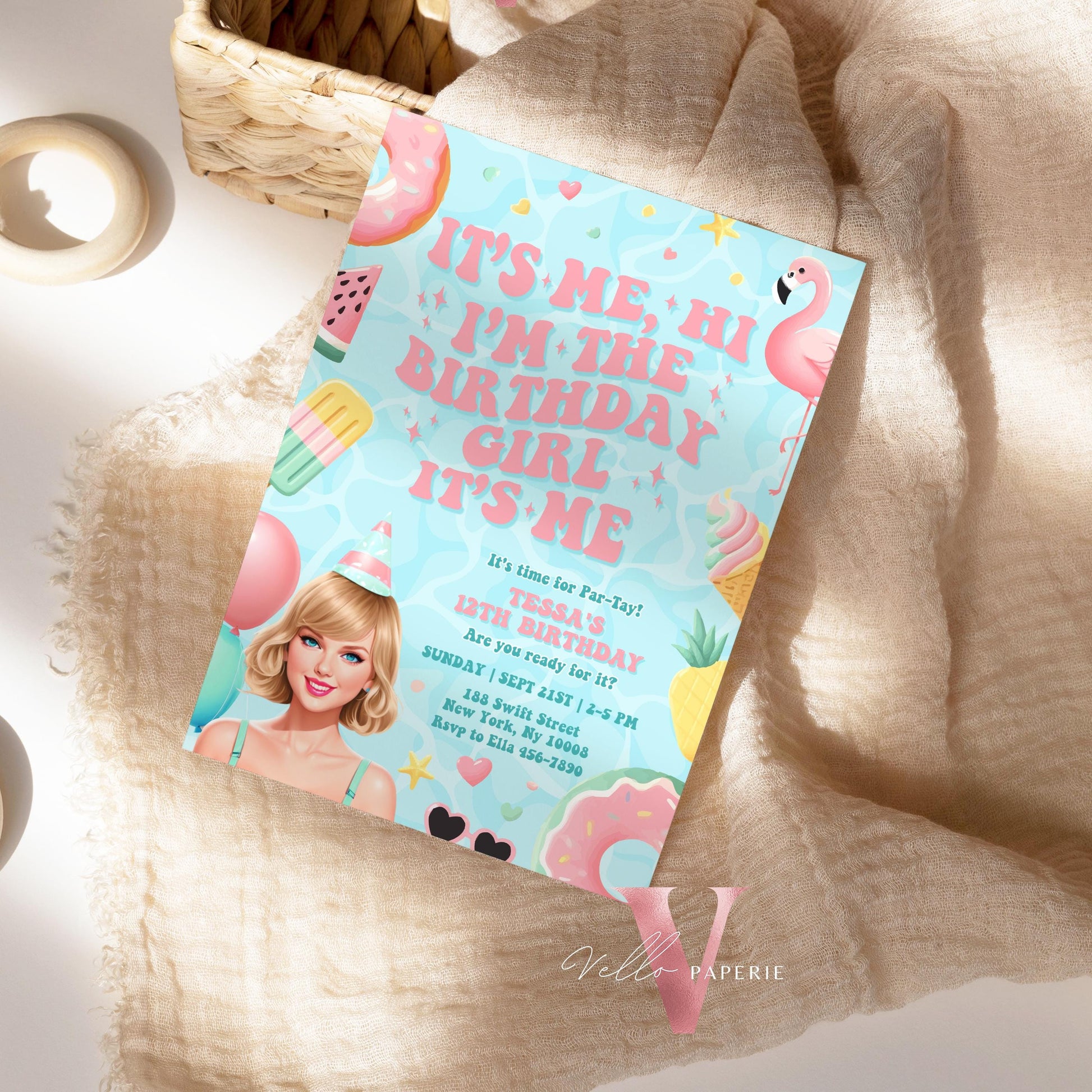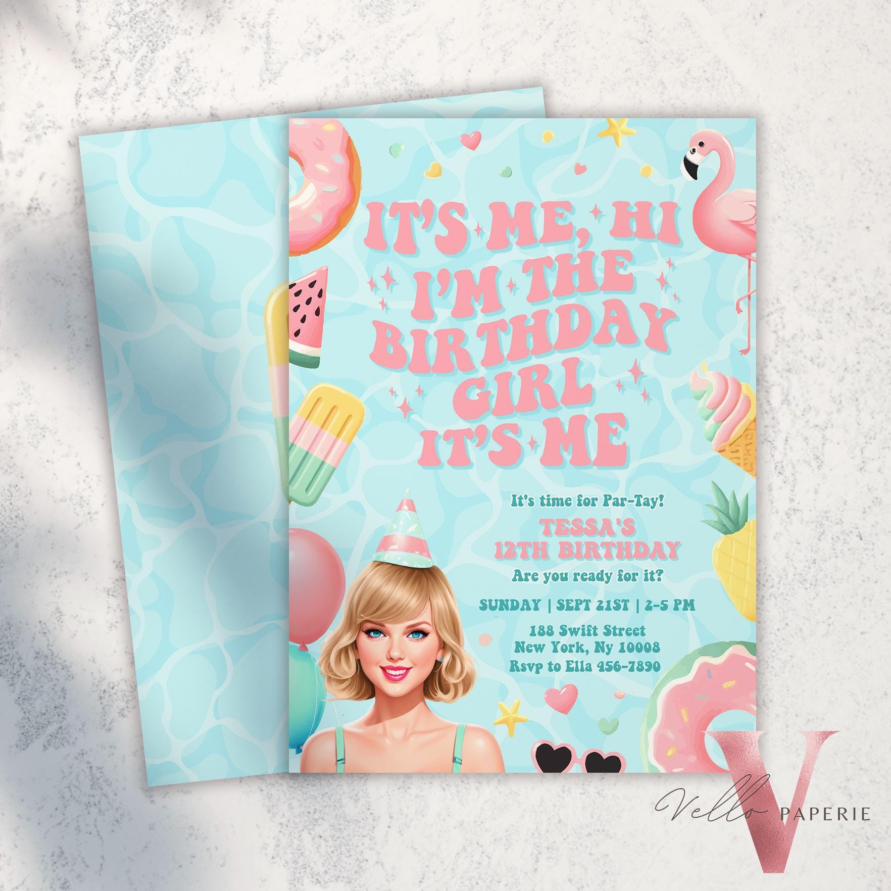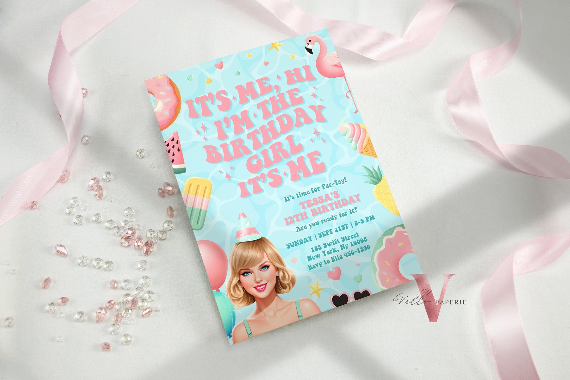 Edit Yourself Par-Tay Pool Party Invitation | Editable Printable Tosca Pink TS Pool Party Invite | It's Me Hi Swift Summer Instant Download
