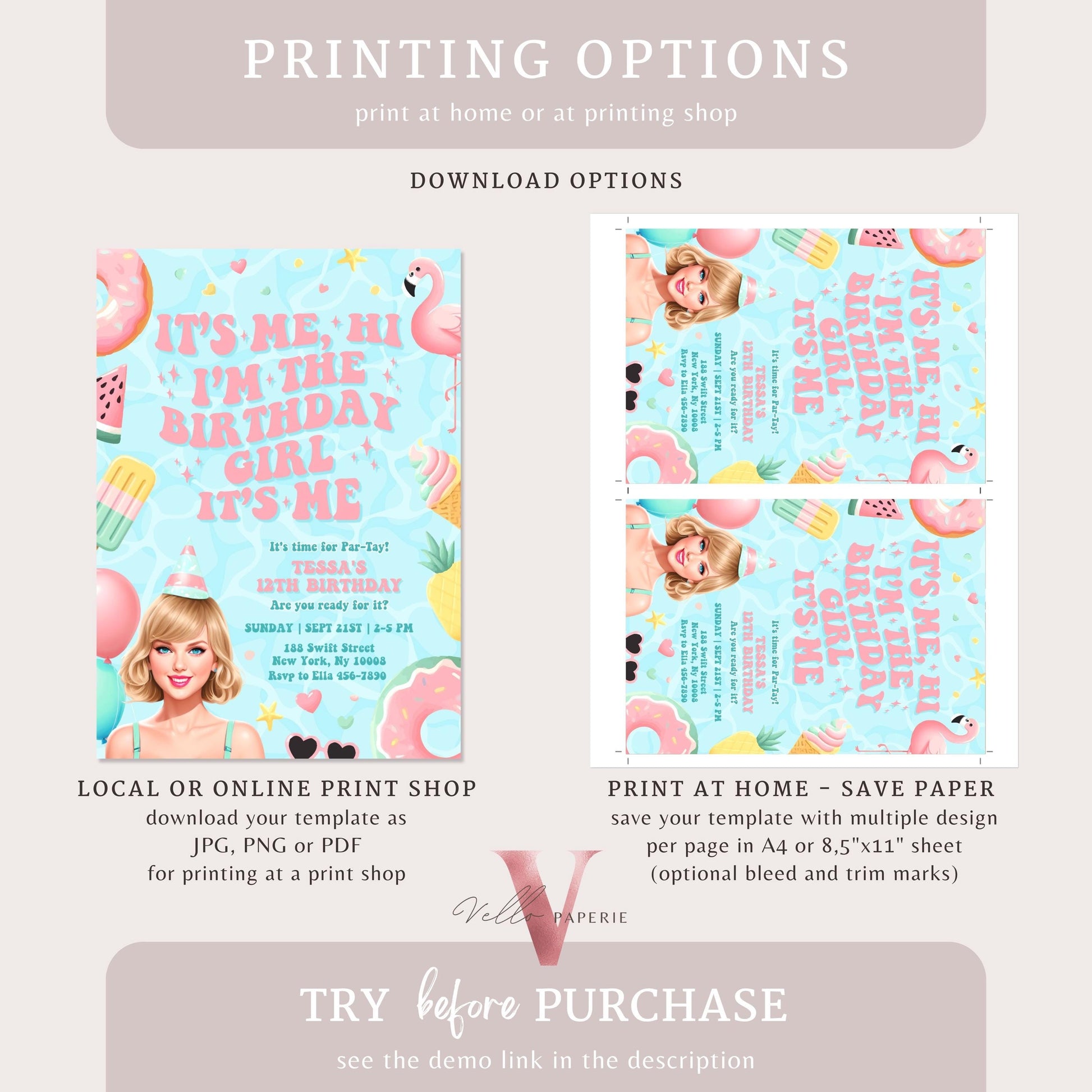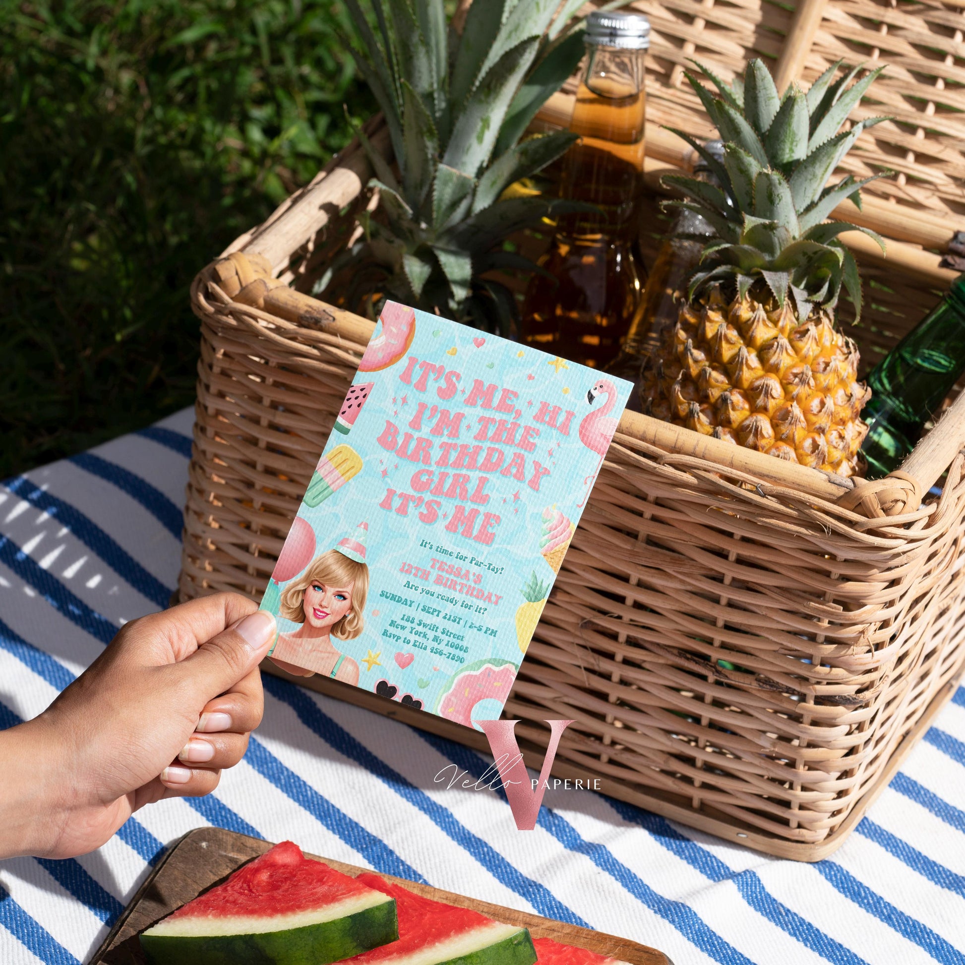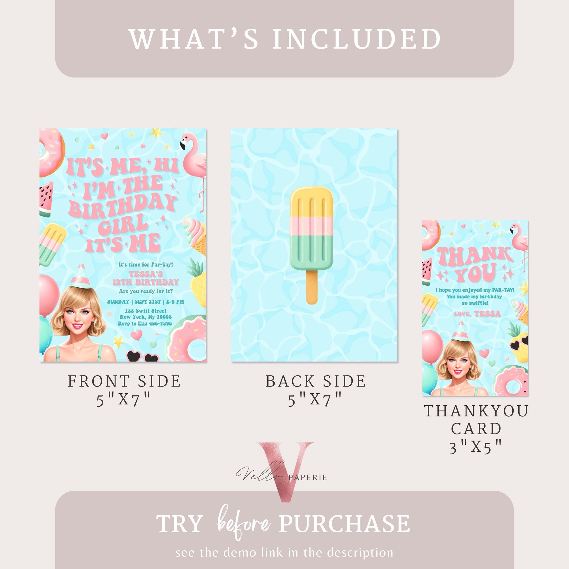Edit Yourself Par-Tay Pool Party Invitation | Editable Printable Tosca Pink TS Pool Party Invite | It's Me Hi Swift Summer Instant Download