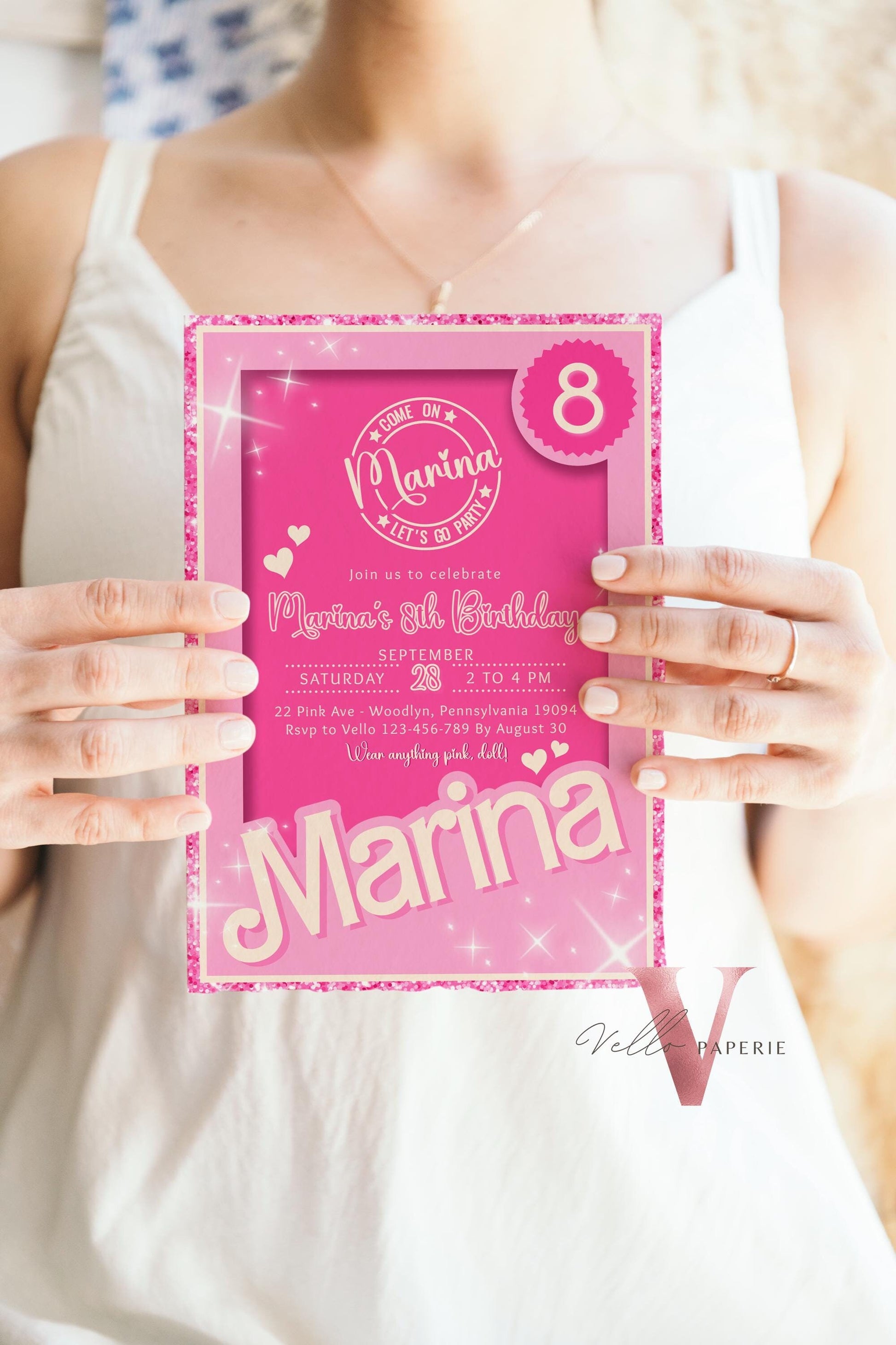 Editable Pink Sparkle Fashion Doll Birthday Invitation, Pink Doll Glitter Come On Lets Go Pink Party Invite Instant Template