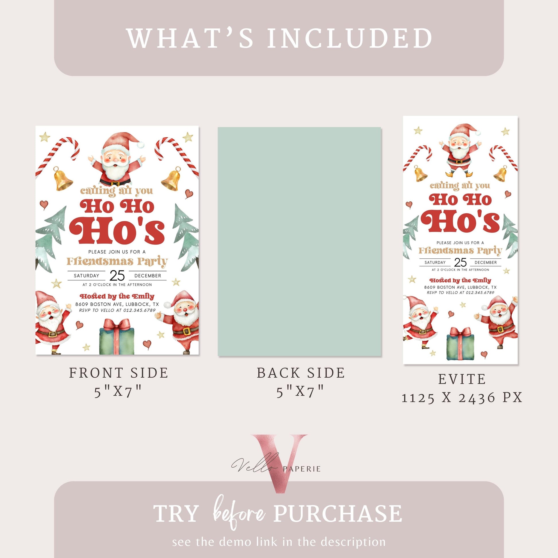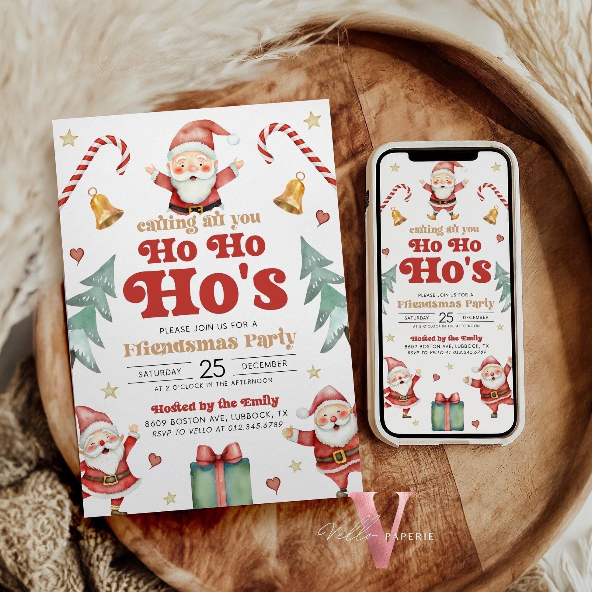 Free EVITE Cute Santa Christmas Party Invitation | Calling All You Ho Ho Ho Red Santa Invite | Fun Winter Holiday Friendsmas Party CHP01