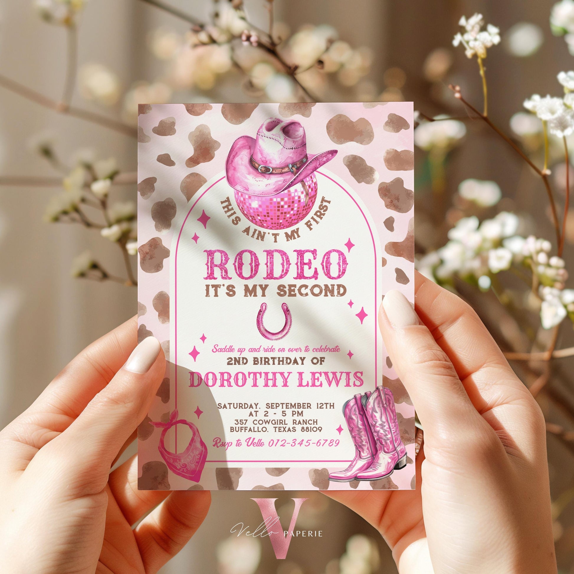 Full Edit Ain't First Rodeo Space Cowgirl Birthday Invitation | Pink Disco Cowgirl Party Invite | Any Age Rodeo Disco Western NashvilleParty