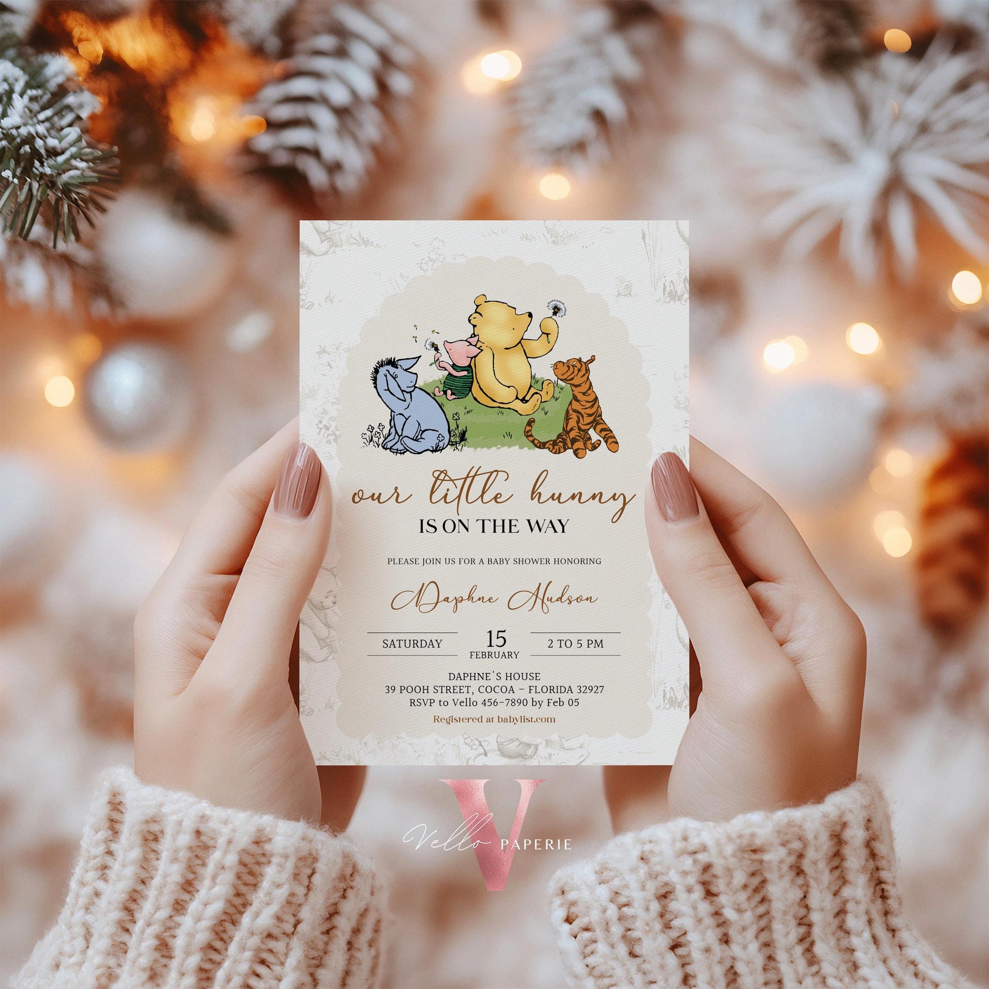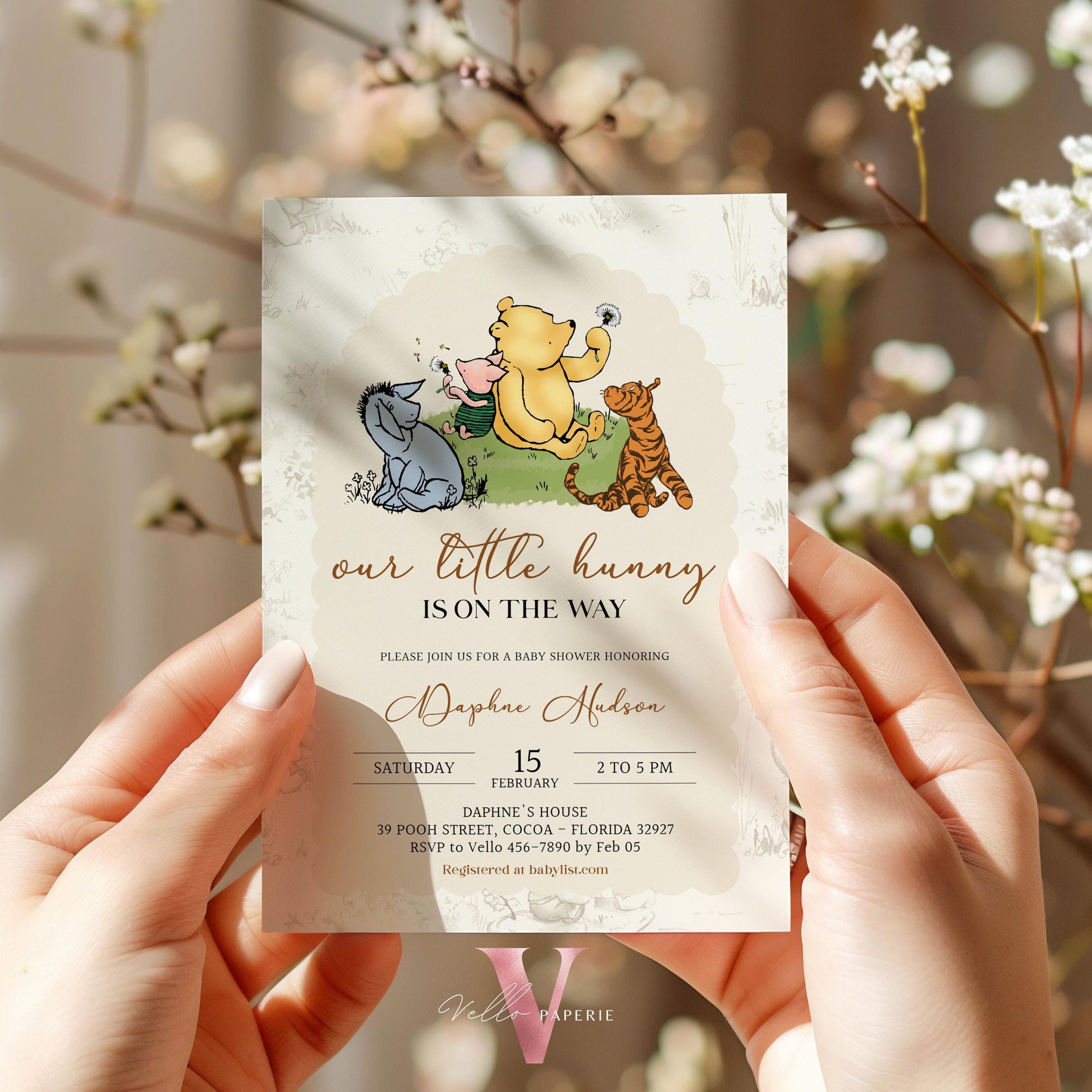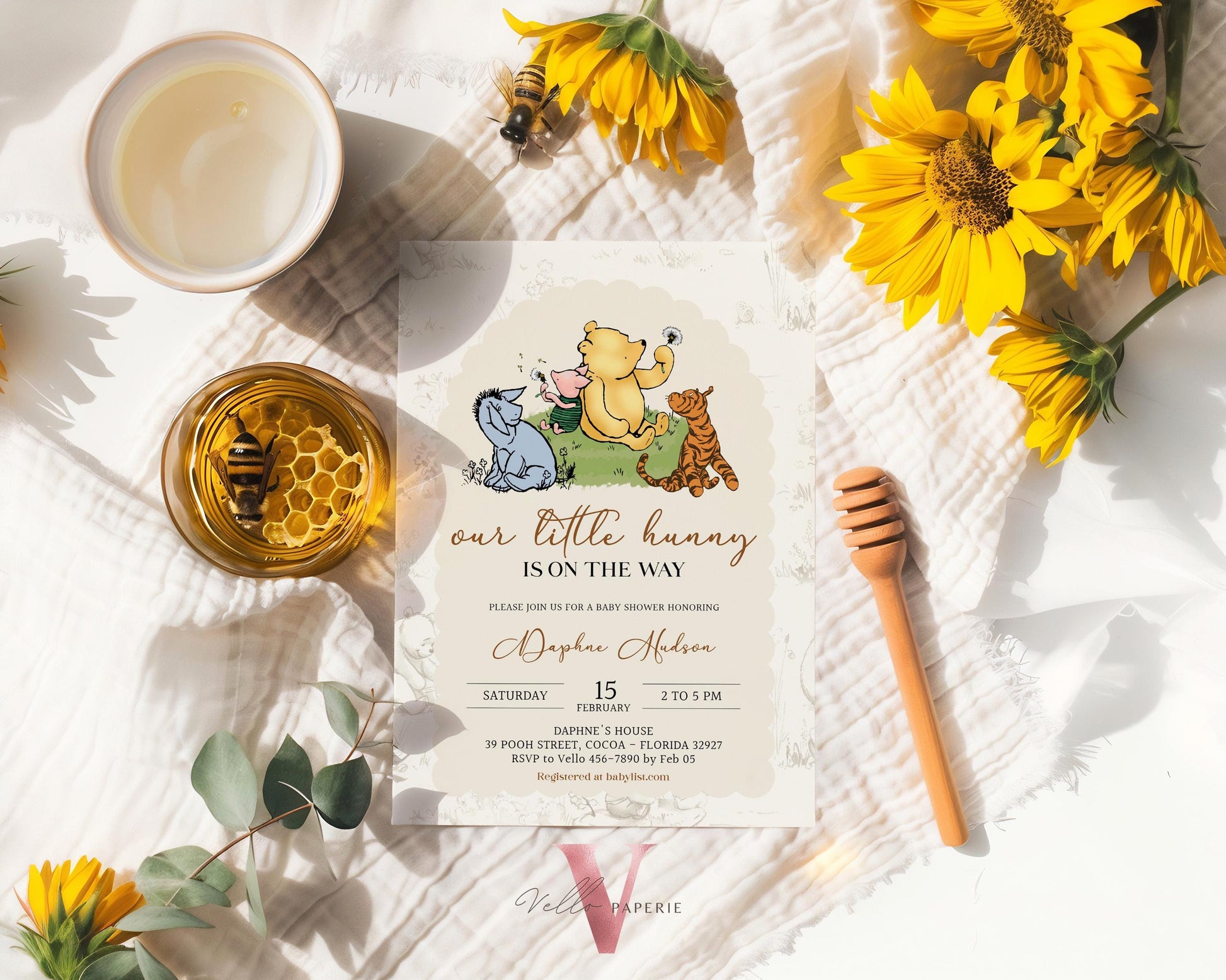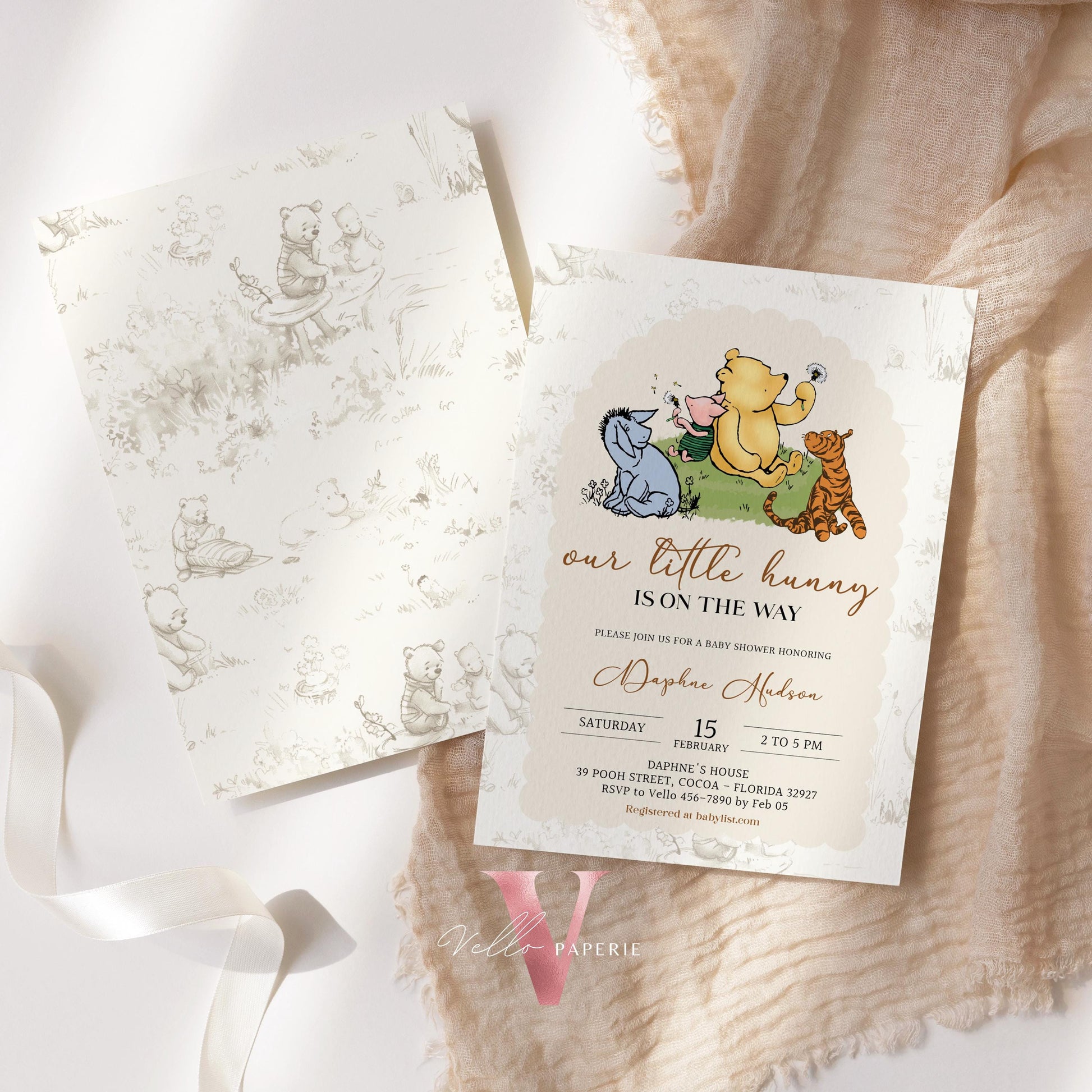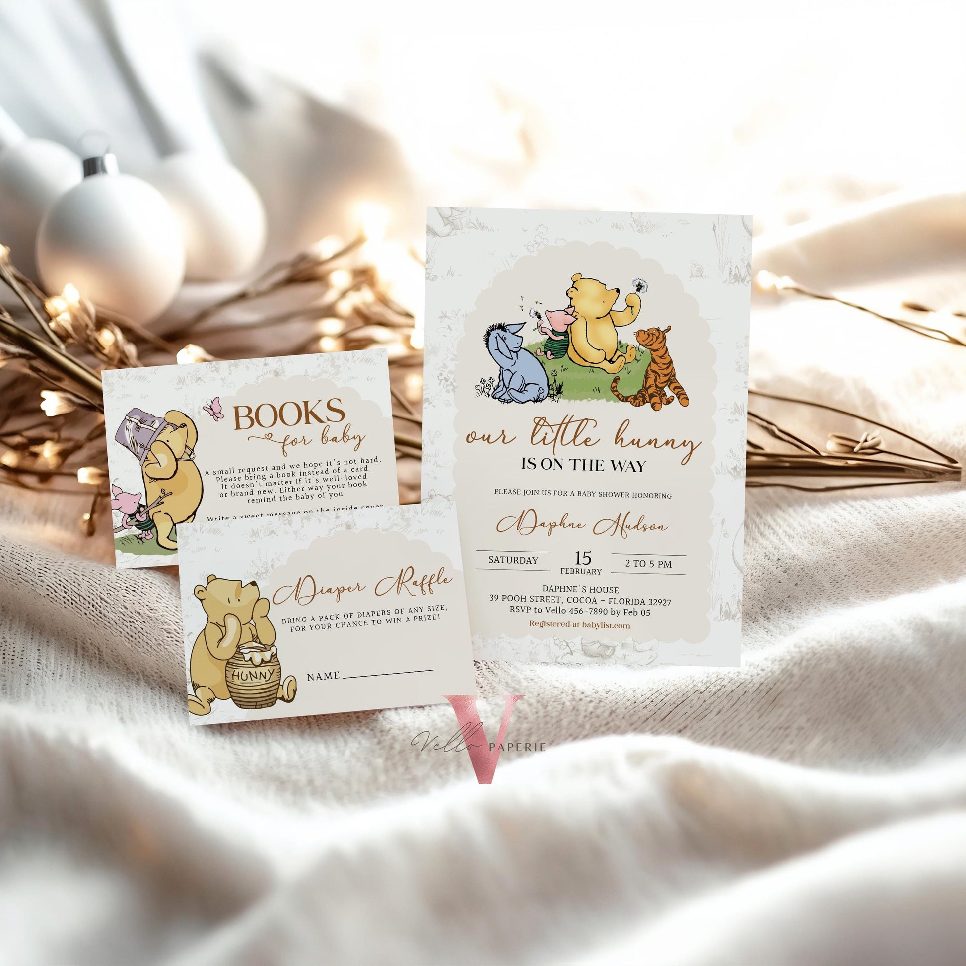 Winnie the Pooh Baby Shower Invitation Bundle | Editable Printable Beige Toile de Juoy, Little Hunny Pooh Baby Shower Party Invite WTP01